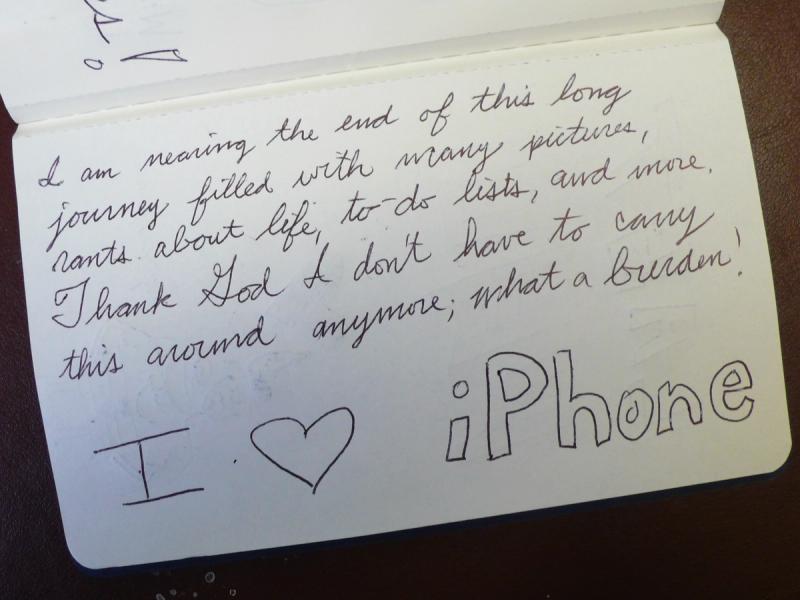The assignment for my Slow Media class: Carry a journal with you for one week. Write or draw whatever you want in it. Just think of something to fill every page before submitting it. To get warmed up to the idea of journal-keeping, we read and discussed articles about the Moleskine revival.